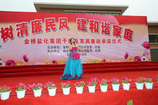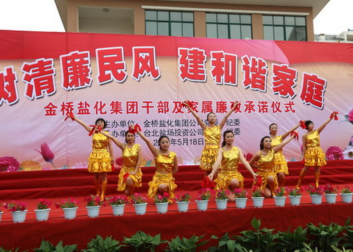 518下午,集團公司在臺北鹽場投資公司舉行黨員干部及家屬“樹清廉民風,建和諧家庭”廉政承諾儀式,并進行了贈書儀式和豐富多彩的文藝演出。在文藝演出中,我公司職工自編自演的快板《廉政準則送清風》、女聲獨唱《守住清廉》、合作節目詩朗誦《清廉暢想》受到了觀看演出的各級領導和職工群眾的一致好評。(司宣 司紀)