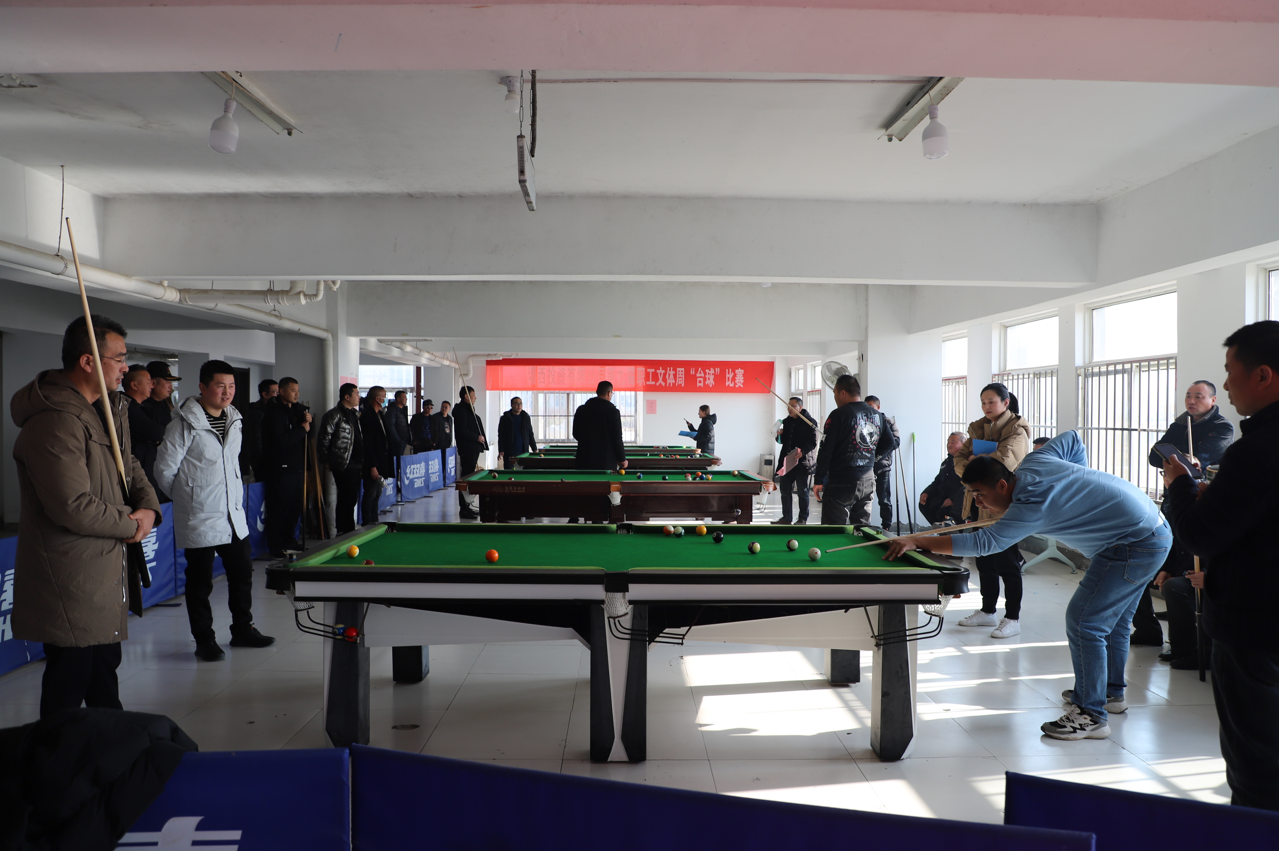 12月21日下午,臺球比賽在裁判員一聲令下正式開始,來自各個單位56名選手,分為8組進行比賽,采取單循環淘汰規,小組內進行逐對“廝殺”,小組前兩名出線。比賽過程相當激烈,有的眾多高手被分在一組,俗稱“死亡之組”,每個人臉色凝重,場外圍滿了觀眾;有的爆出“冷門”,去年獲得第一名的選手第一輪慘遭淘汰;有的選手比較緊張,洞門門口球都沒有打進。經過激烈角逐,共有16名選手出線。
