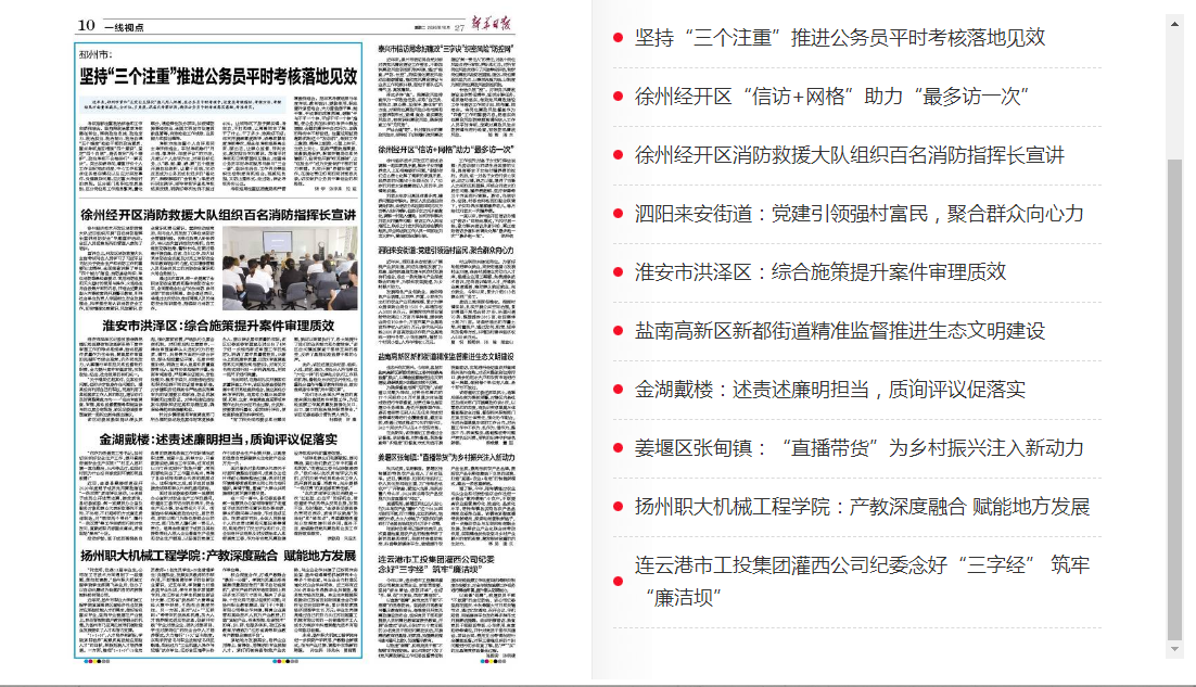 新華日報10月27日刊登灌西公司紀委工作舉措