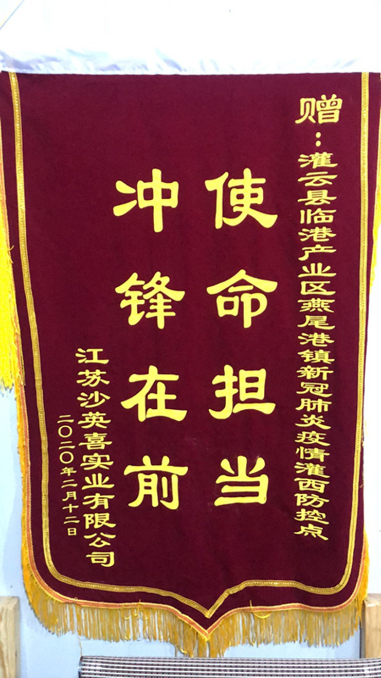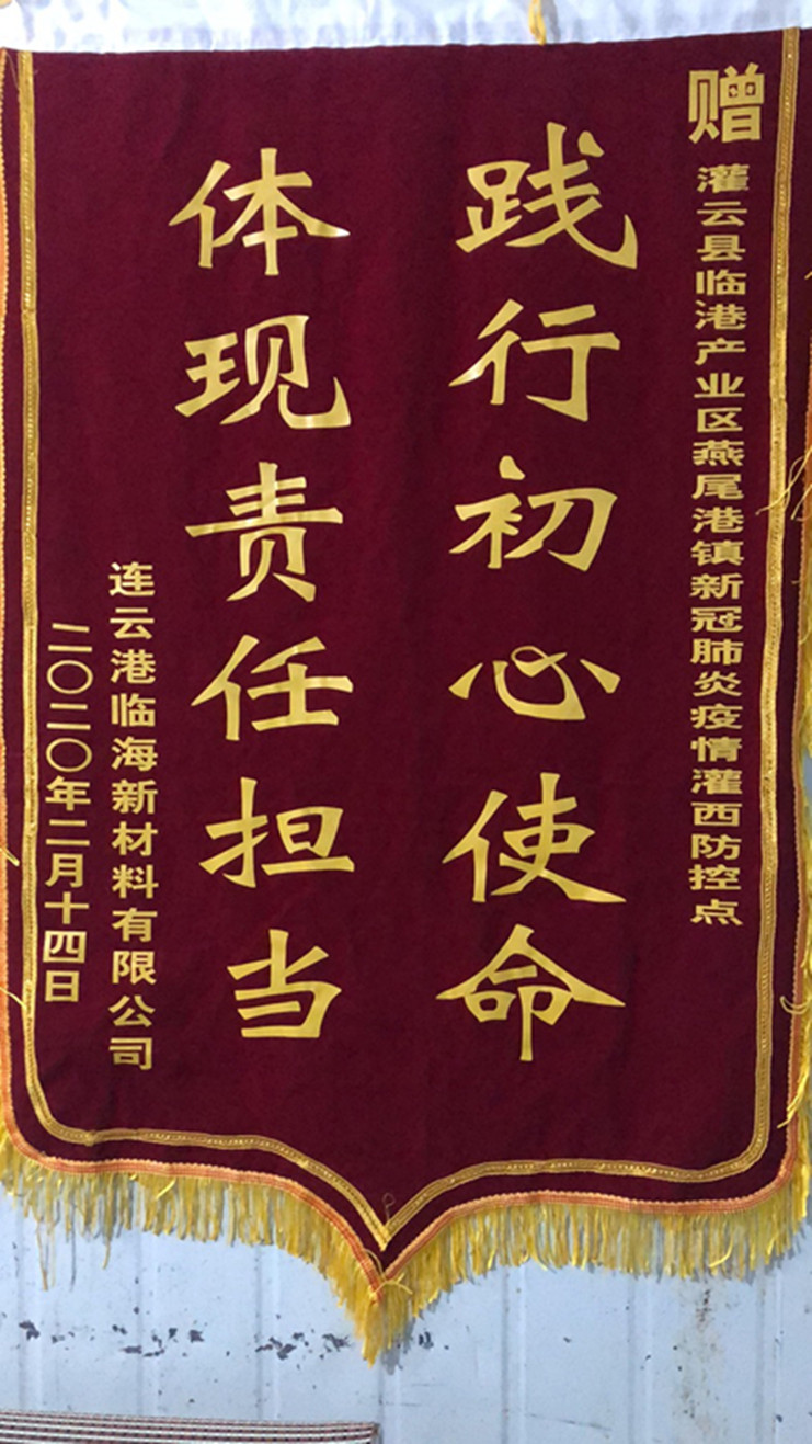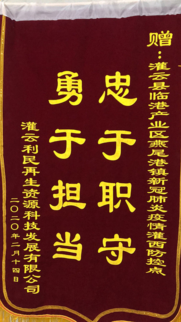 “非常感謝你們對我們三家公司的守護,為我們廣大職工筑牢了一道防疫情的銅墻鐵壁,你們辛苦了!”近日,連云港臨海新材、灌云利民再生資源、江蘇沙英喜三家公司分別為新冠肺炎疫情灌西防控點值守人員送來三面錦旗,感謝灌西投資公司值守人員在疫情期間為疫情防控工作作出的貢獻。