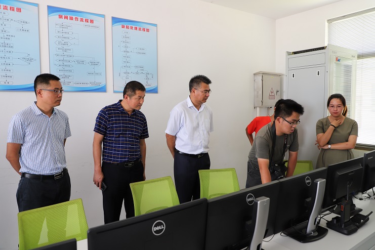在現場負責人員的陪同下,考察組一行參觀了“漁光一體” 池塘,詳細了解了項目的建設規模、投資總量、裝機容量、智能管理系統以及養殖狀況,并在控制室實時觀看了當天的發電情況。隨后考察組一行還觀看了項目有關情況的宣傳片,對整個漁光一體項目有了更深入的了解。