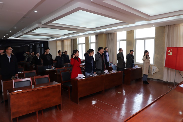 機關黨總支圍繞機關工作特點,組織黨員開展重溫入黨誓詞、老黨員為新黨員贈送新黨章、佩戴黨徽活動,并圍繞如何“高質發展后發先至”這一要求做好服務生產工作進行了座談交流。