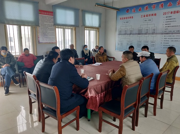 會上,實業公司支部書記沈玉波首先傳達了連云港市工投集團有限公司和灌西投資公司職代會精神,總結2018年生產情況,下達2019年生產任務,書記對柴門區海鹽基地生產作了下一步生產部署:一、清除灘場大米草,和格壓實,塑布更新準備工作;二、緊抓制鹵工作;三、做好灘場文明。最后何總就安全問題給了幾點建議:安全行車不并排、安全生產、禁止養塘。(實業公司)