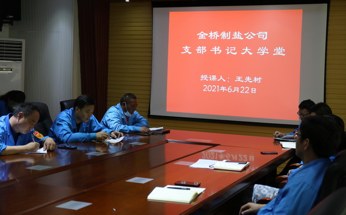 為進一步推動公司黨史學習教育走深走實,公司黨委組織開展“支部書記大學堂”活動。622日,加工鹽車間黨支部書記王先樹以學習黨史“悟思想、辦實事、開新局”為主題,結合工作實際,為各支部黨員干群上了一堂生動的黨課。