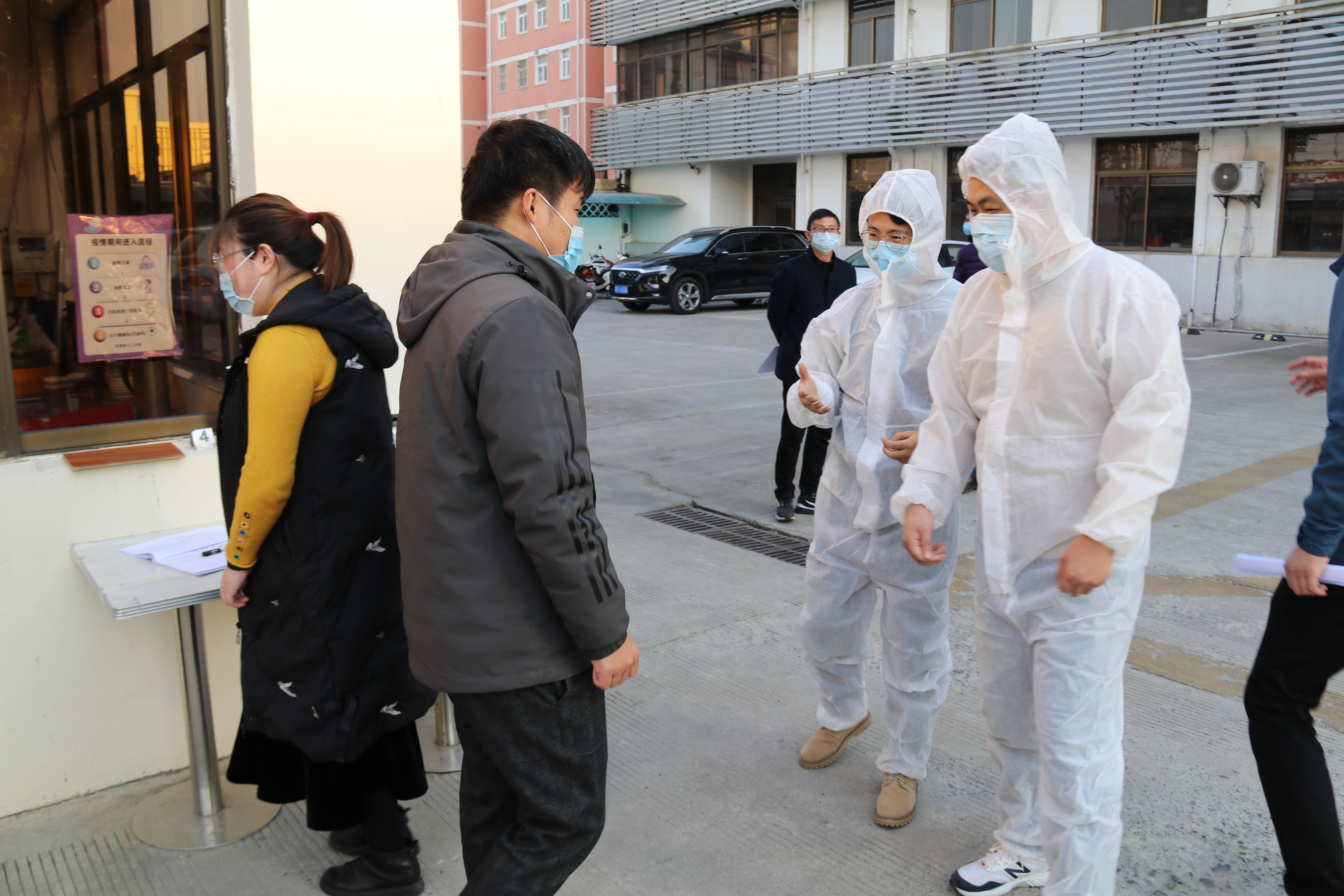 十分鐘后再次確認體溫異常,處置組成員向疫情防控領導小組報告情況,經小組領導批準,與集團、屬地社區報備后,等待120救護車接診。