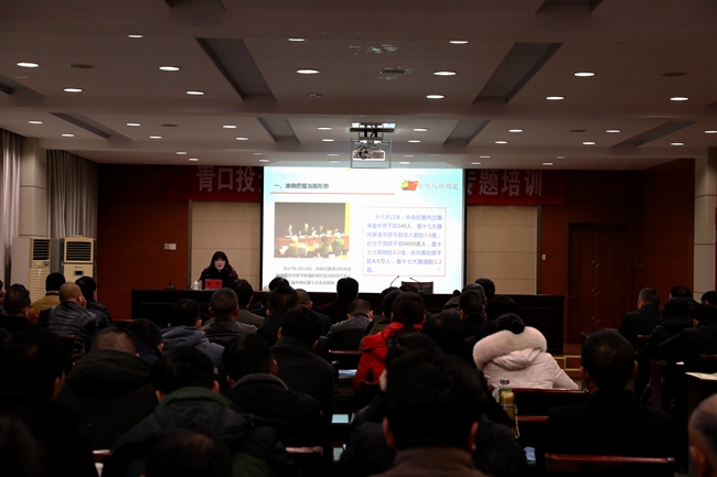 為進一步強化作風建設,增強黨員干部廉潔從業意識, 1 月 11 日上午,青口公司邀請市紀委 黨風政風監督室主任繩艷 作了題為《落實八項規定精神 從嚴從實改進作風》的專題報告,集團紀委書記汪群、公司領導班子成員和全體在崗黨員參加此次講座,講座由黨委書記、董事長胡傳法主持。