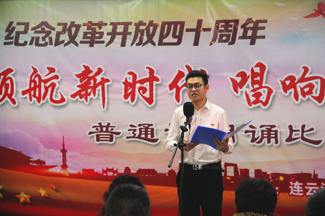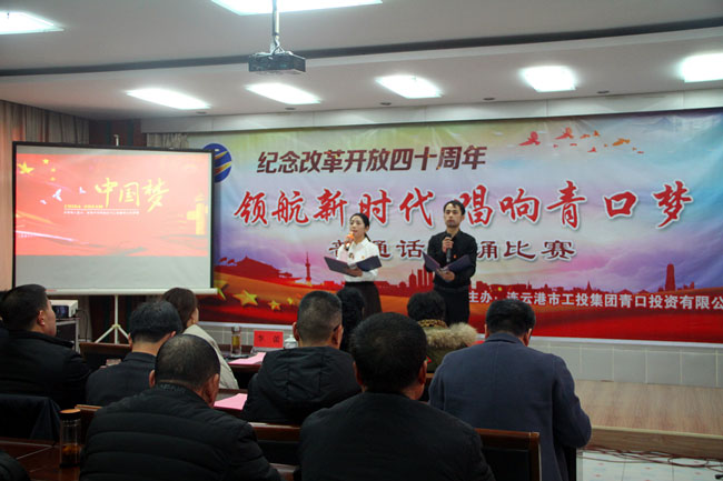 為了紀念改革開放四十周年,引導和激勵廣大職工圍繞 “高質發展、后發先至”主題主線,為建設“強富美高”新青口、開啟青口發展新征程貢獻力量。12月11日下午,青口公司黨委隆重舉行“領航新時代 唱響青口夢”紀念改革開放40周年普通話朗誦比賽?;顒友埖竭B云港市語委辦副主任、詩朗誦藝術家協會副主席朱衛文,國家級普通話測試員、市朗誦藝術家協會副秘書長李蕾、主任播音員、市朗誦藝術家協會副主席朱平擔任評委。公司領導班子 及 全體管理人員參加活動