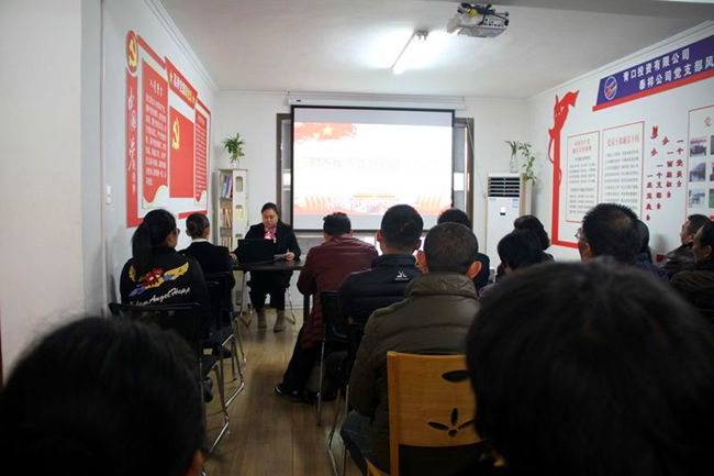 11月20日下午,公司青年宣講隊走進基層第二站一行七人來到泰祥公司,為30余名黨員和職工宣講。