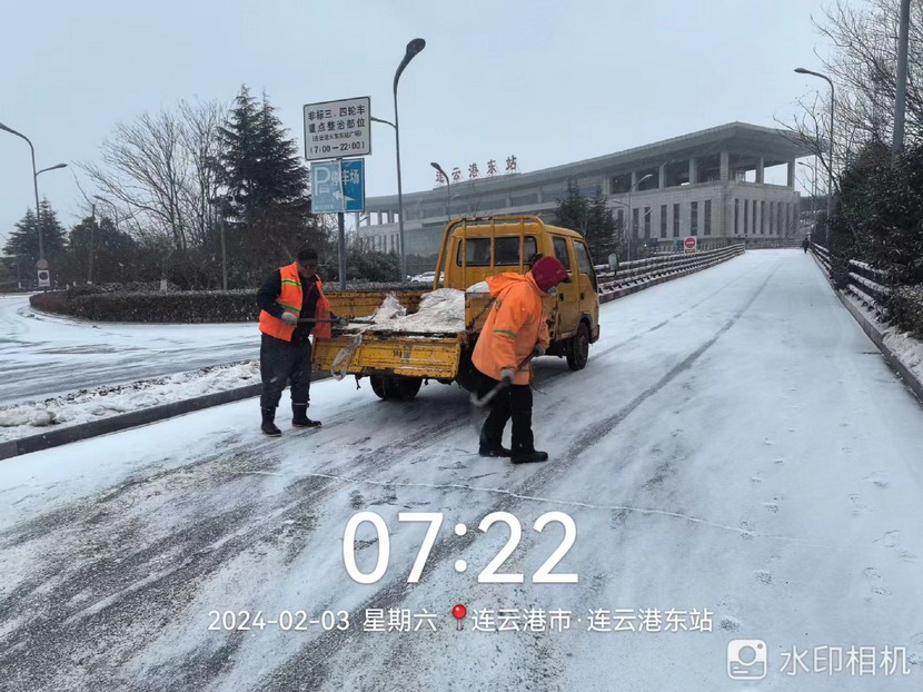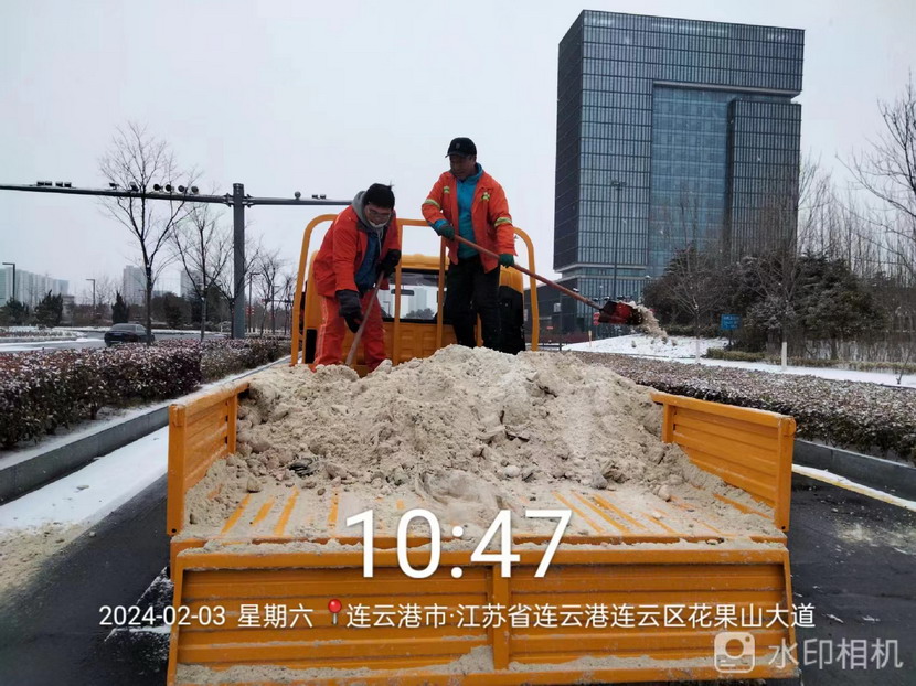 “雪情即戰情”。天剛蒙蒙亮,猴嘴、開發區、連云、墟溝····連云港火車東站、馬山立交、黃海大道、花果山大道、東方大道·····到處是臺北、華茂公司的“橙色”突擊隊