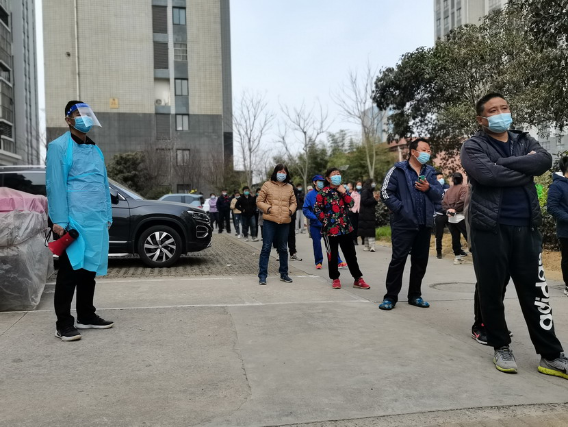 李明:“請大家站好,保持一米線的距離,很快就排到了,不要急躁?!?/span>