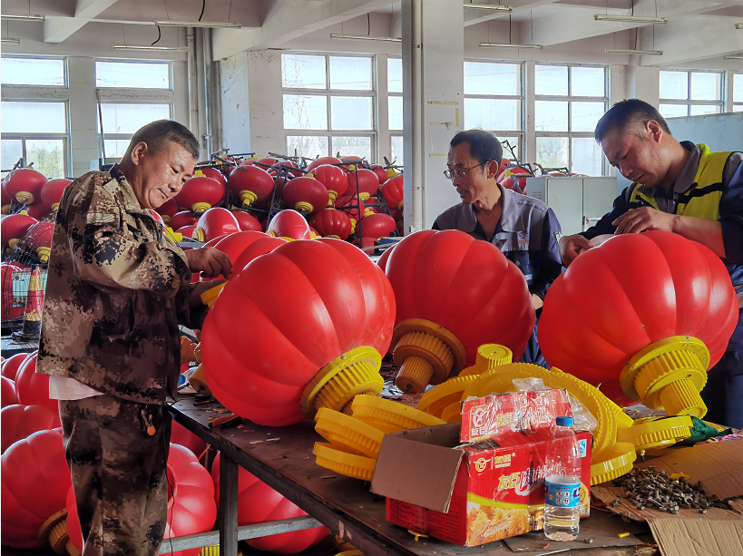 中秋國慶雙節將至,翔立分公司承接了LED燈籠和中國結的安裝工程。由于燈籠長期重復使用,部分配件已經損壞、丟失,為了保證工程進度,趕在中秋節前完成燈籠和中國結的安裝工作,翔立分公司所有職工和移動抽調的部分的員工放棄節假日休息,主動參與燈籠維修工作。所有人分工合作,將壞掉的配件拆掉,換上新的配件,再交由專業電工測試,確認燈籠完好無損再由安裝人員運輸至路邊安裝。