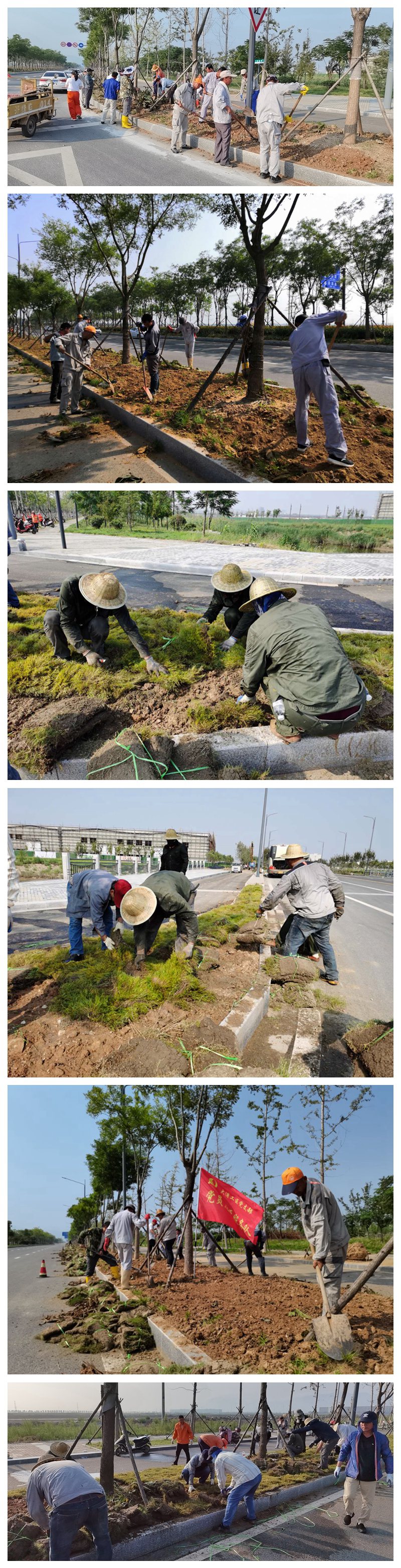 35度的高溫,6000平方米草坪鋪設任務,一個工作日的工程時限,6點集合,7點施工,來自翔立分公司、大浦工區、海州灣公司的30名突擊隊員······一一普通的數字背后是臺北“鐵軍”臨危受命,面對“艱難險阻”施工任務,一往無前,偏向虎山行的英雄氣概和恪守初心、不負使命的擔當作為。