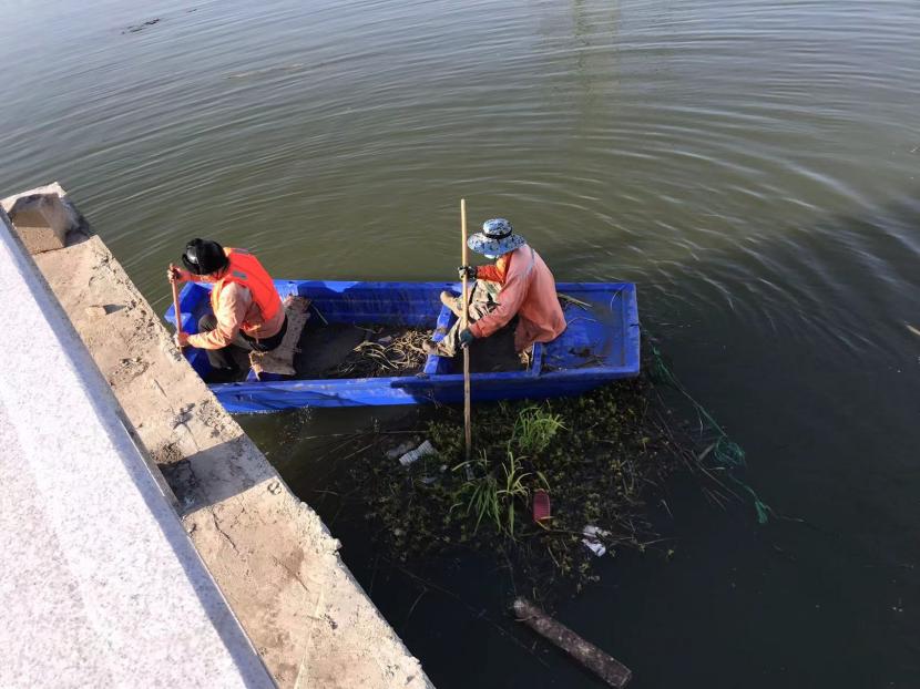 盛達市政分公司開展清理水草專項行動改善河道生態環境
