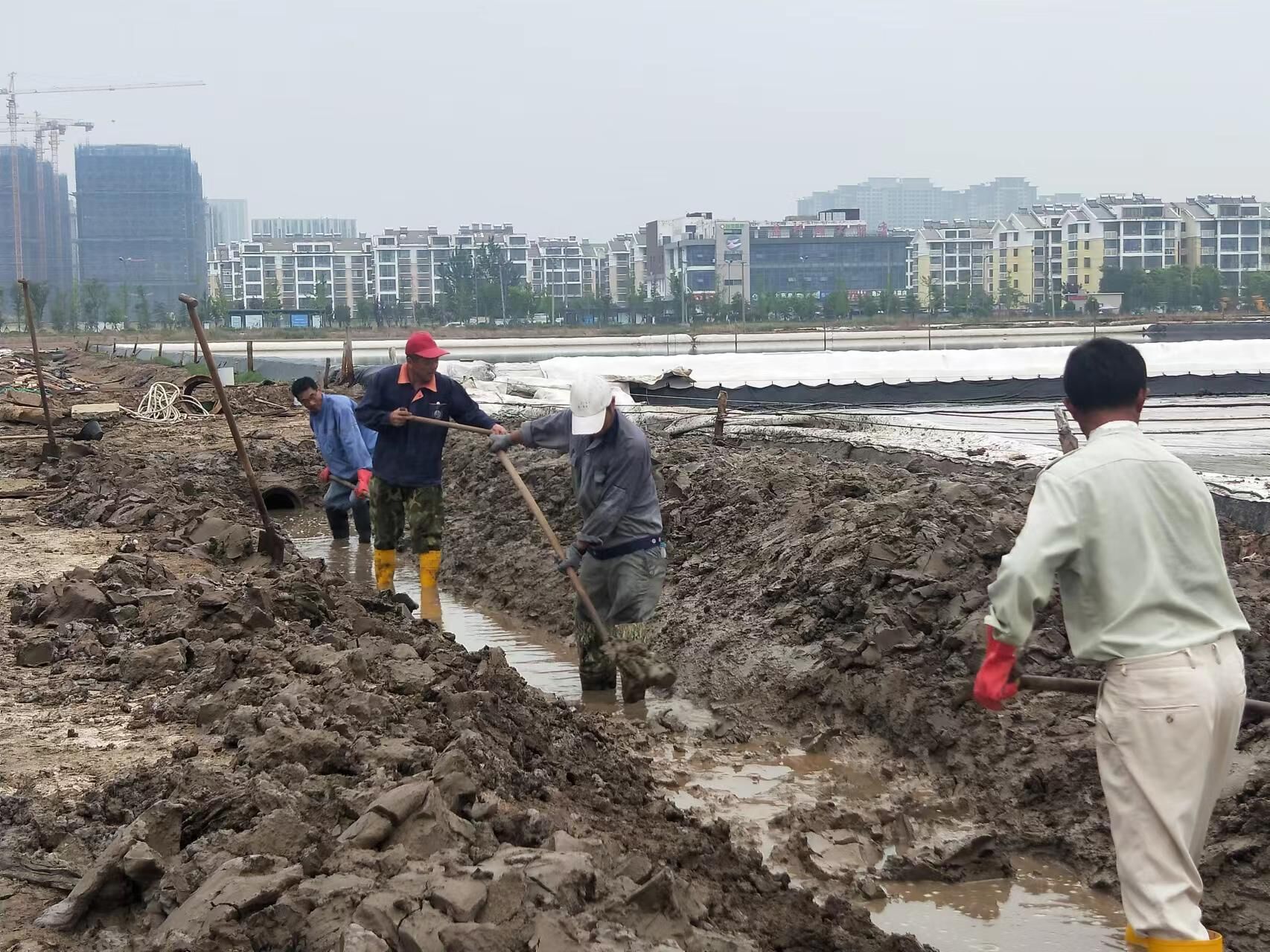 根據部署安排,公司建立防汛隊伍,備足鐵锨、編織袋、塑料繩、水泵等防汛物資和機械。汛期來臨前組織各班組自查安全生產情況,做好應急演練,進一步完善防汛抗災工程,疏通排淡溝道,加強塑池管理、防風工作,加高口門備熟泥,塑池小包圍工程,雨季遇不穩定天時,提前苫蓋一部分塑池,凡是中雨以上降水,及時按排人員對結晶池進行檢查,及時排淡,做到雨前、雨中、雨后勤檢查,確保確保鈣液、礦鹽勞動成果安度雨季。