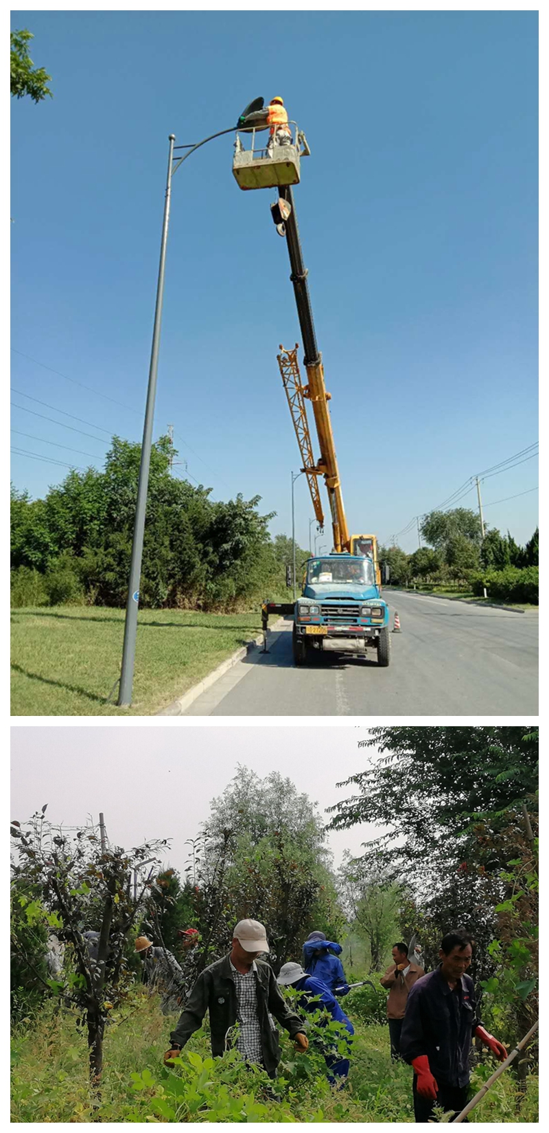 路燈安裝工程是一項技術活、一項精細活、更是一項辛苦活,師傅們每天早上6點多一點就從家出發,到達現場便開始作業,為了避免爬上爬下不方便和節省時間,他們盡量少喝水,甚至不喝水,在太陽的照射下在高達十幾米的高空一干就是四五個小時,這樣的工作強度,對于人均年齡已近56—57歲的幾位老師傅來說,真的是技能與體能的雙重考驗。這兩項工程若能保質保量在既定時間內順利完工,完成九、十月份“挖潛增效”指標任務指日可待。